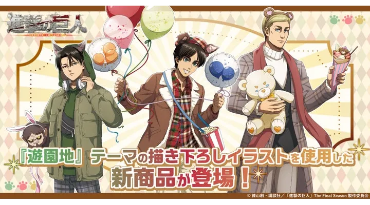 進撃の巨人 新商品!エレンたちが遊園地で遊ぶ描き下ろしグッズが登場!予約販売期間・グッズ種類まとめ