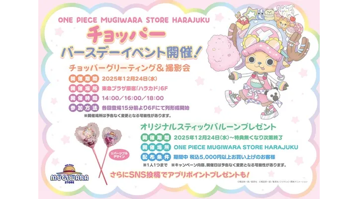 麦わらストア原宿「チョッパー」バースデー記念!いつから?グリーティング&プレゼントキャンペーンまとめ