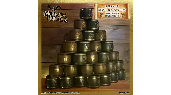 【モンハン】木樽ジョッキ「箔アイコンシリーズ」新登場!武器アイコンがカッコイイ|販売場所・価格まとめ