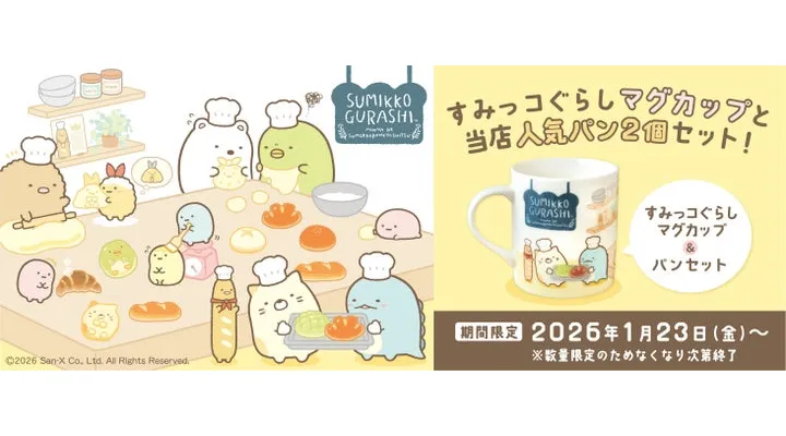 すみっコぐらし「パンきょうしつ」マグカップ&パン2個セット!数量限定販売!