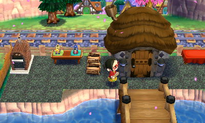 橋も和風に統一して、お庭の右スペースには「わふうなベンチ」と「おちゃうけセット」をリメイクでだいふくからおまんじゅうに変更してみました!