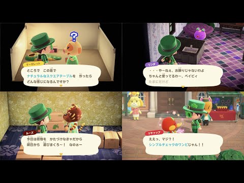 【あつ森】キャンプサイトに呼んだルーズに「まるたのラウンドテーブル」をあげた/島を引っ越すタイシの家に行ってみた/グラさんに「ボーダーワンピース」あげた/引っ越しが終わったスミに「つみきベッド」レシピ