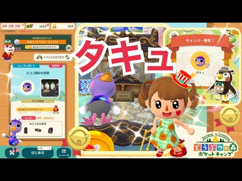 どうぶつの森 ポケットキャンプに登場する「タキュ」の招待条件・出現条件、もらえるクラフト材料などをまとめています。