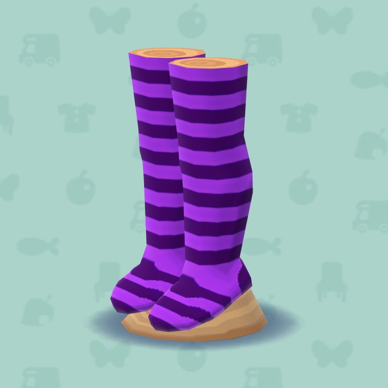 どうぶつの森 ポケットキャンプに登場する服「ボーダータイツ・パープル」の入手方法、作成方法などをまとめています。