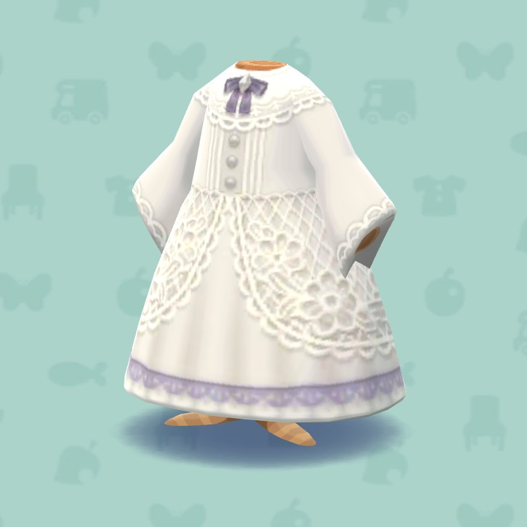 どうぶつの森 ポケットキャンプに登場する服「レースのまじょドレス・ホワイト」の入手方法、作成方法などをまとめています。