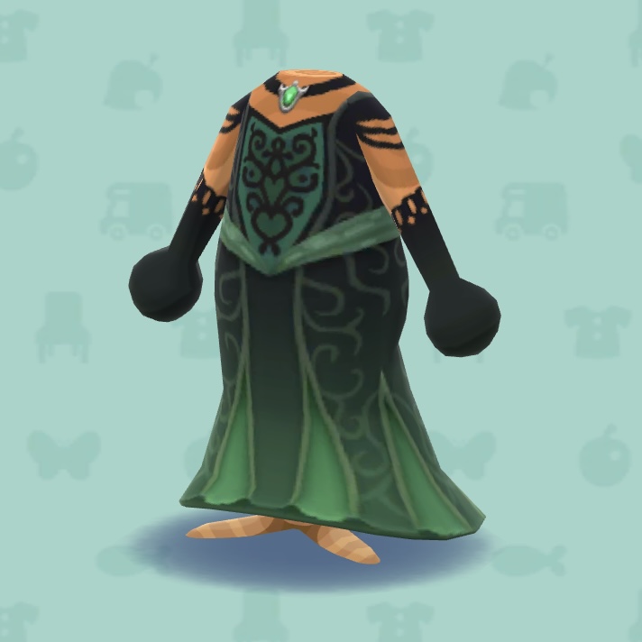 どうぶつの森 ポケットキャンプに登場する服「まじょのロングドレス・グリーン」の入手方法、作成方法などをまとめています。