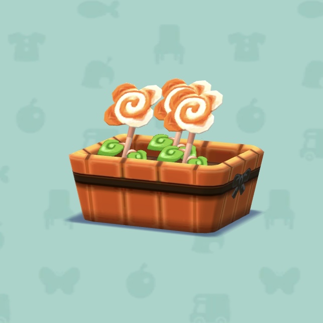 どうぶつの森 ポケットキャンプに登場する家具「オレンジロリポップフラワー」の入手方法、作成方法などをまとめています。