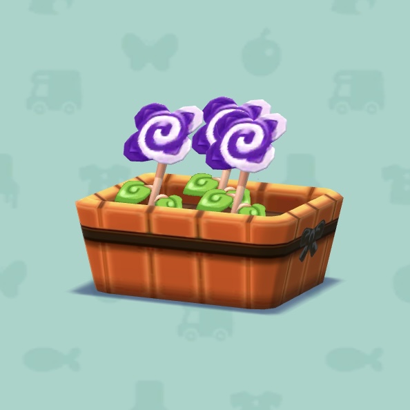 どうぶつの森 ポケットキャンプに登場する家具「グレープロリポップフラワー」の入手方法、作成方法などをまとめています。