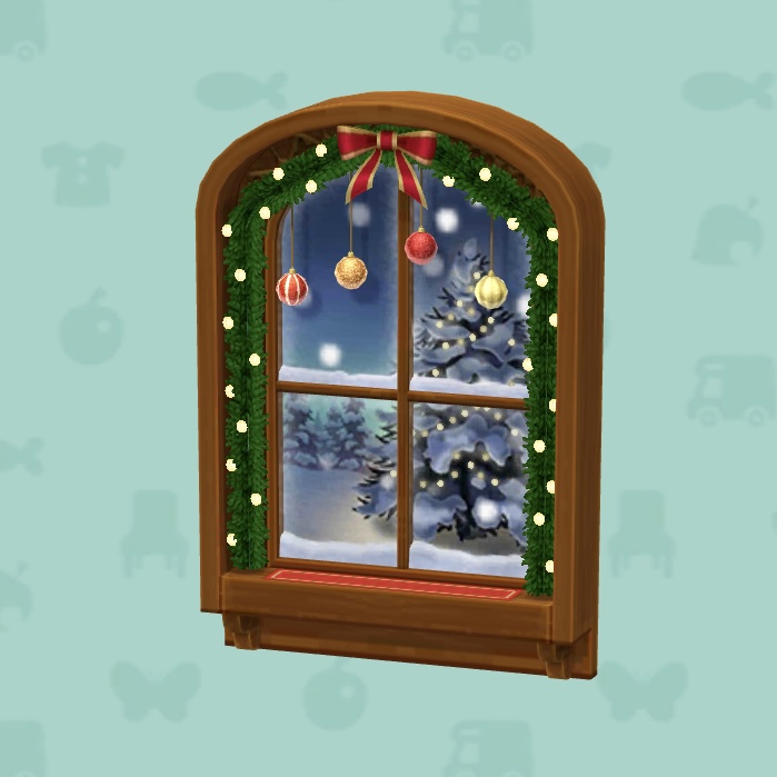 どうぶつの森 ポケットキャンプに登場する家具「クリスマスなまど・ブラウン」の入手方法、作成方法などをまとめています。