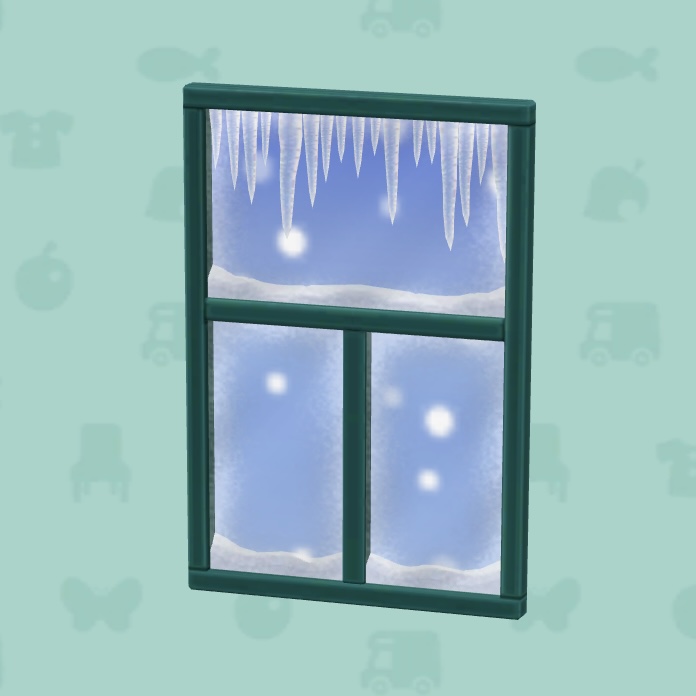 どうぶつの森 ポケットキャンプに登場する家具「ゆきのふるまど・グリーン」の入手方法、作成方法などをまとめています。