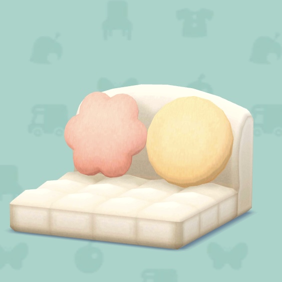 どうぶつの森 ポケットキャンプに登場する家具「ふわもこルームのローソファA」の入手方法、作成方法などをまとめています。
