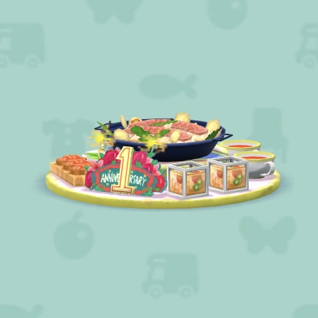 どうぶつの森 ポケットキャンプに登場する家具「パーティーのごちそうB」の入手方法、作成方法などをまとめています。