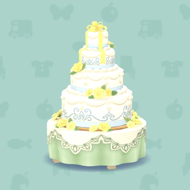 どうぶつの森 ポケットキャンプに登場する家具「きいろいバラのウェディングケーキ」の入手方法、作成方法などをまとめています。
