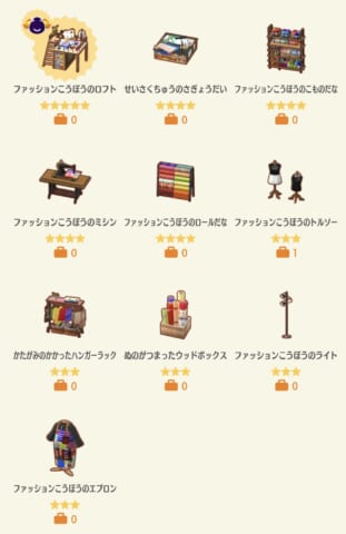どうぶつの森 ポケットキャンプに登場するクッキー「メリヤスのファッション工房」の入手方法・用途などをまとめています。