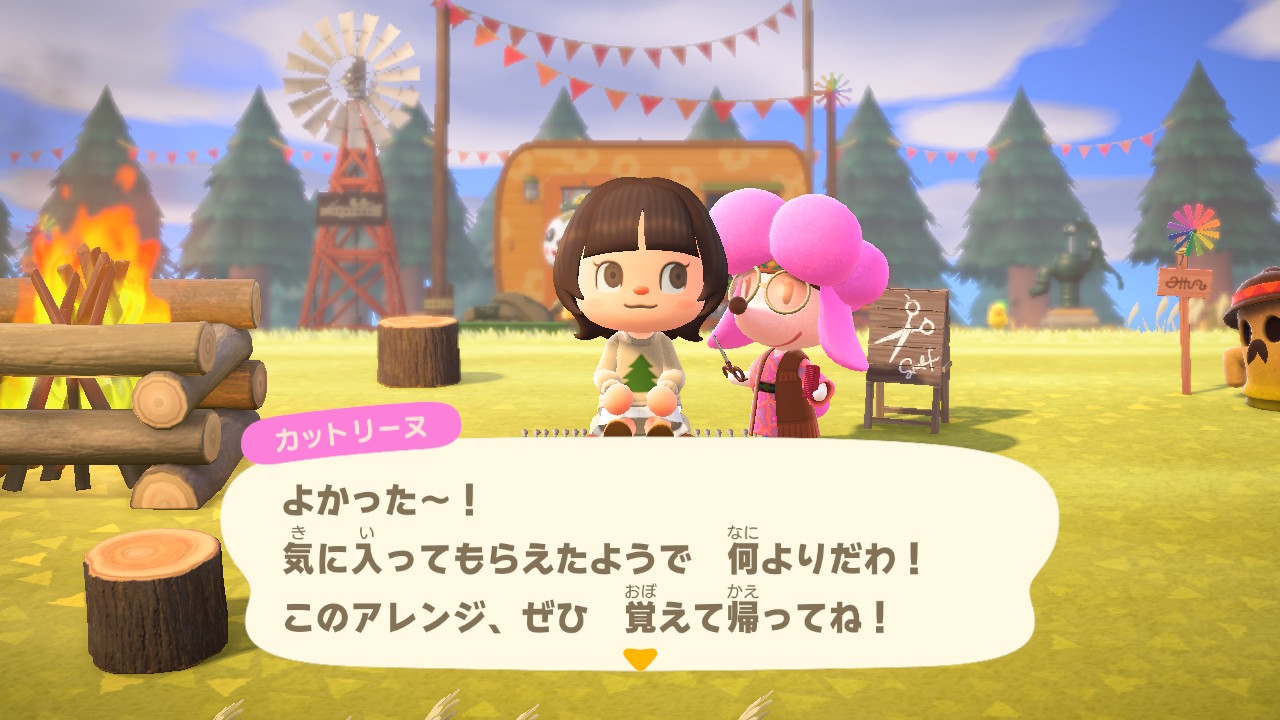 大型無料アップデート(Ver.2.0)以降、パニーの島広場にて、カットリーヌから無料で新しい髪型を教えてもらえるようになりました。