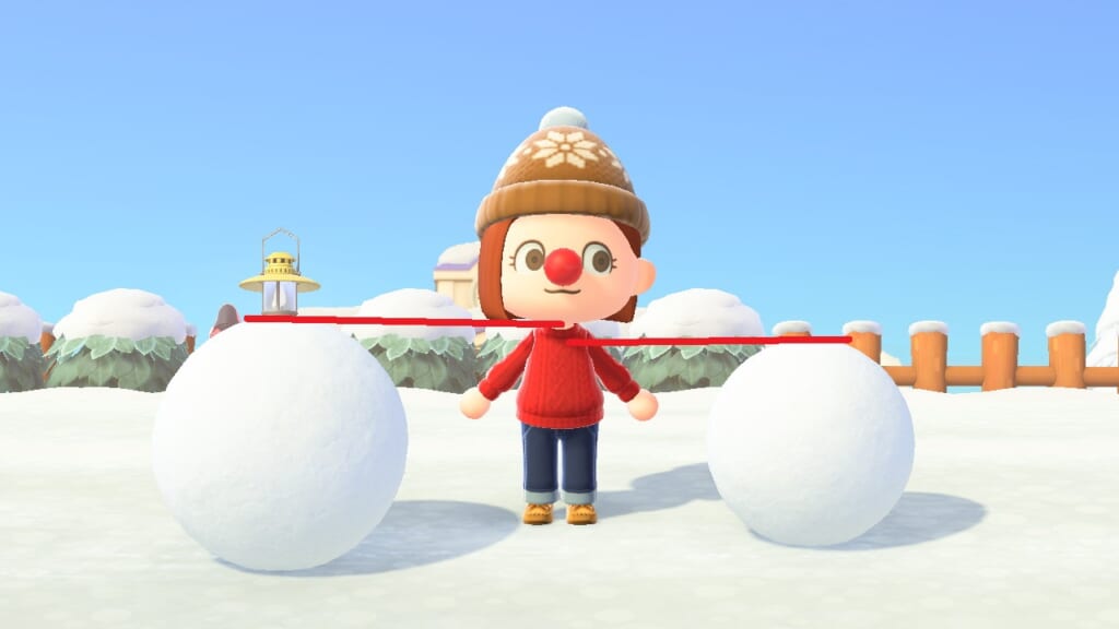 これを利用し、雪だるまを作りたい場所のみを通常の雪のある地面にし、他の場所をマイデザインなどで舗装しておくことで、雪玉の出現場所をある程度固定し、効率的に雪だるま作りを進めることが可能です。