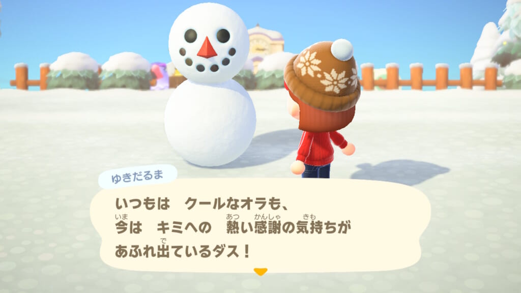雪だるまを完成させると会話イベントが発生します。