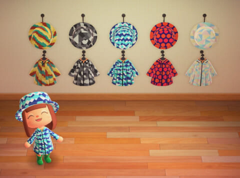 また、ゲーム内で作者IDで検索すると、それぞれのレインコートと同じデザインの帽子も5種類、確認できます。