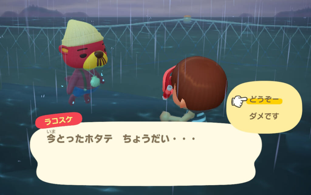 海で採ったホタテをアイテムと交換してくれる |