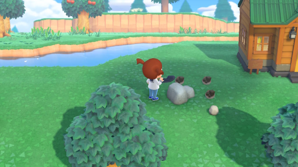 効率よく8回叩くためには、岩の背後にスコップで2〜3マス穴を掘って、後退しないようにするのがコツです。
