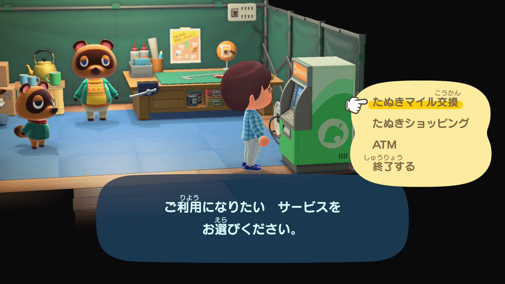 マイルは案内所にある端末「タヌポート」で使用できます。