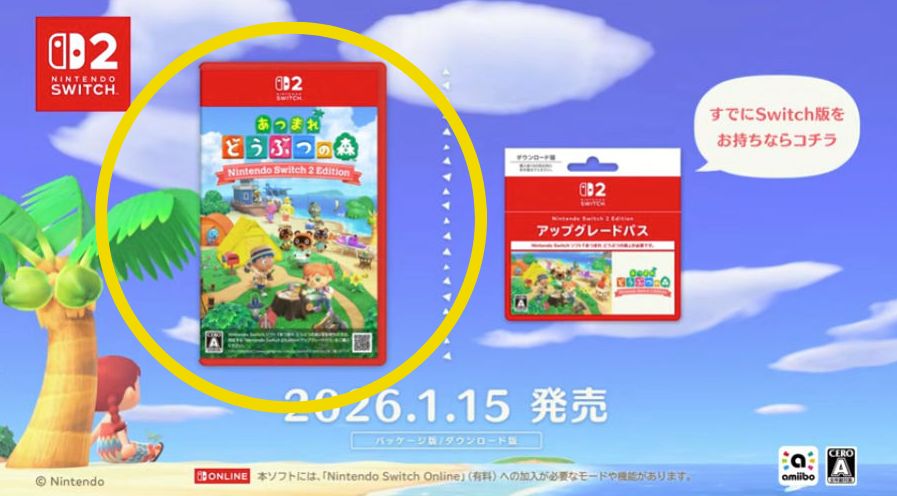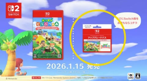 あつまれどうぶつの森(Switch版)をすでにお持ちの方は、Nintendo Switch 2本体で『アップグレードパス』を購入することで、Nintendo Switch 2 Editionを遊ぶことができます。