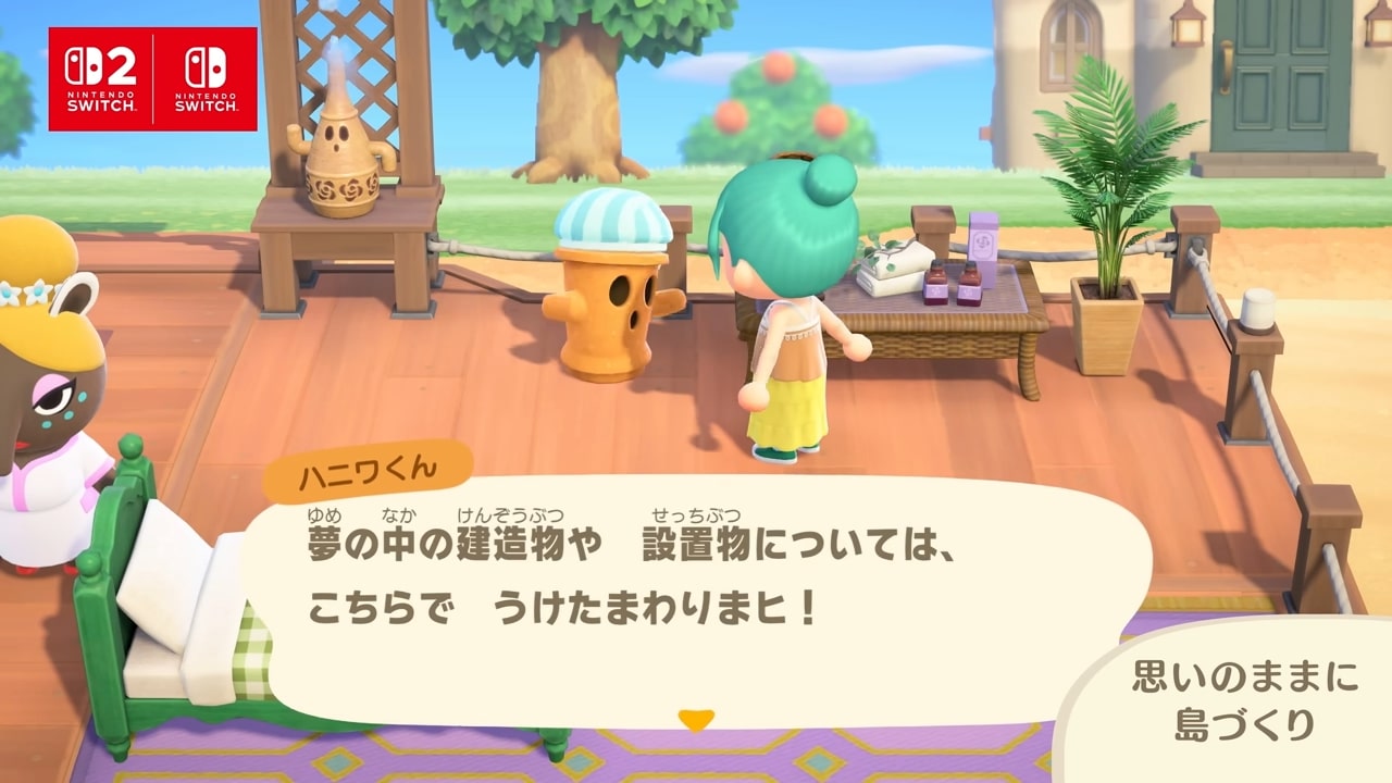 夢の中なので、一度手に入れたことのある家具(料理も含め)はすべて使用可能です。現実の島では制限のあった様々なことを気にせず、理想の島を思いきり形にできるのが大きな特徴です。