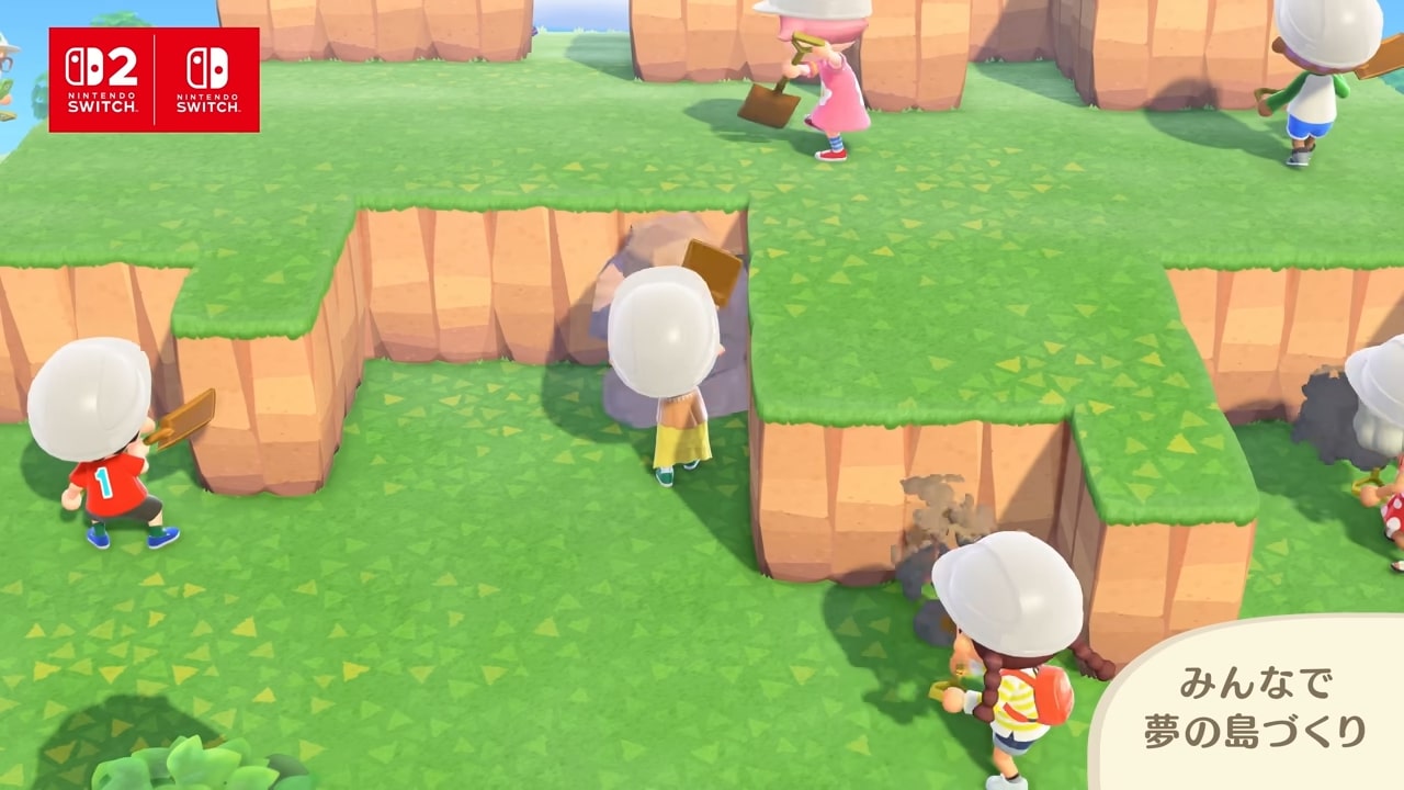 新要素「夢の中でみんなで島づくり」では、他のプレイヤーと協力して夢の島を作ることができます。友達の夢の島に集まって、最大12人で崖を作ったり池を掘ったりと、リアルタイムでの共同作業が可能です。