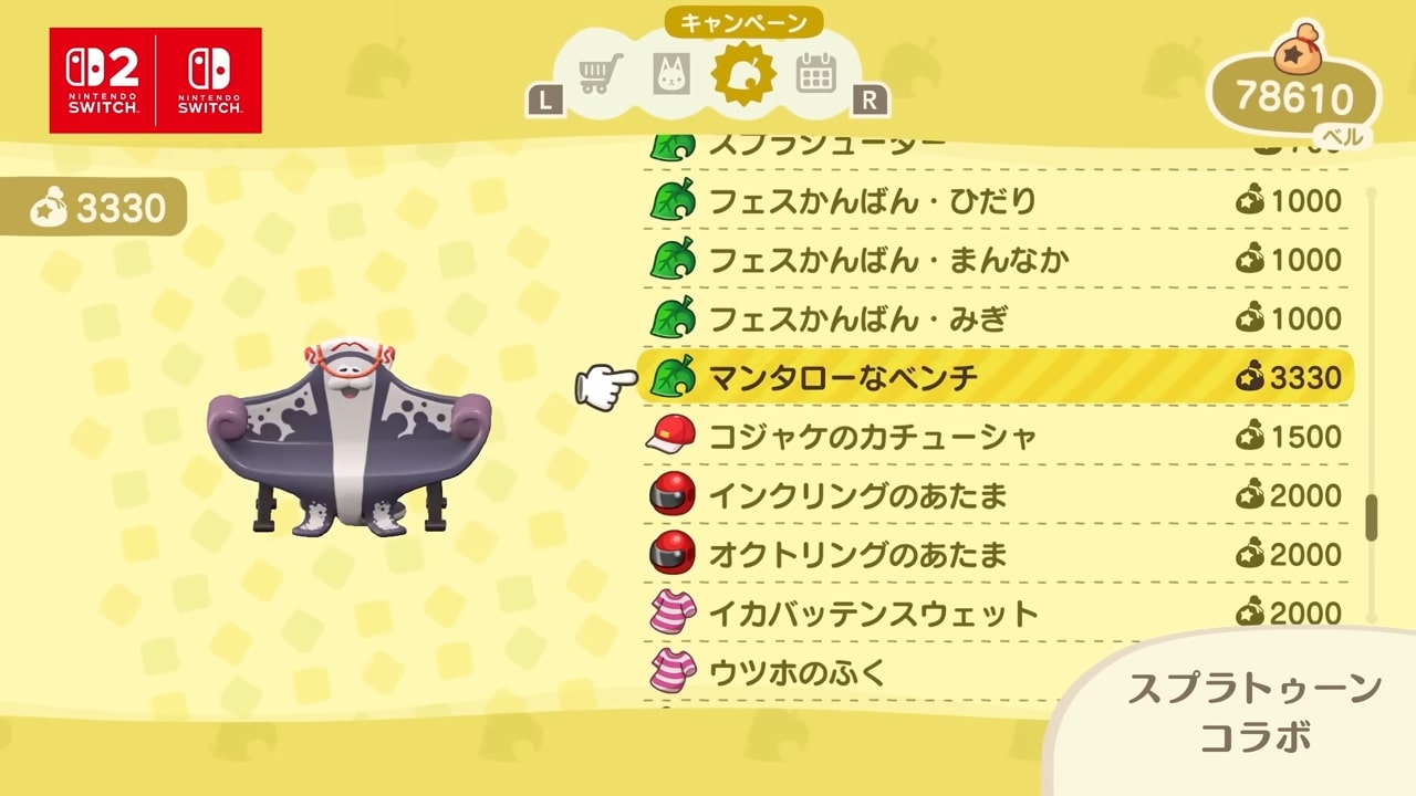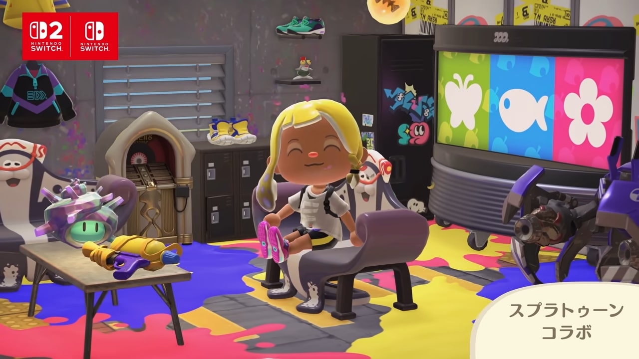 スプラトゥーンをテーマにした家具も追加され、部屋の中をネオン×ポップカラーの世界に変えることができます。スプラシューターやペイント柄の床、ステッカーデザインの壁紙など、“イカした部屋”を作れる個性的なアイテムが多数登場予定です。