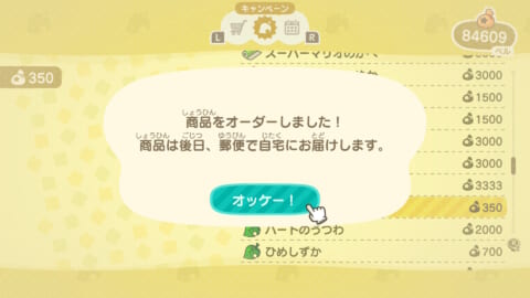 たぬきショッピングで商品を注文すると、翌日ポストにアイテムが届きます。購入してもすぐには手に入らないので注意してください。