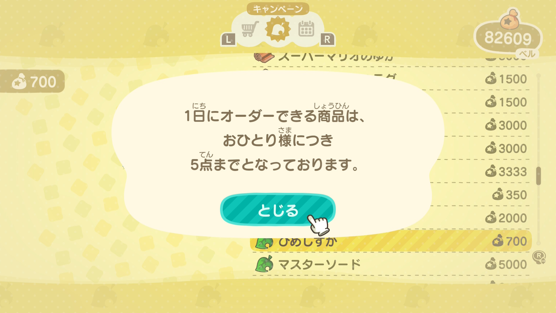 たぬきショッピングで1日にオーダーできる上限は5個までです。