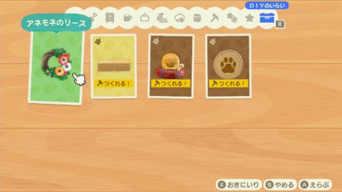 素材が足りているものは「つくれる!」と表示されているので、この表示をもとに納品アイテムを作成していきましょう。「Y」ボタンで一度に複数作ることもできますので、ぜひ試してみてください。