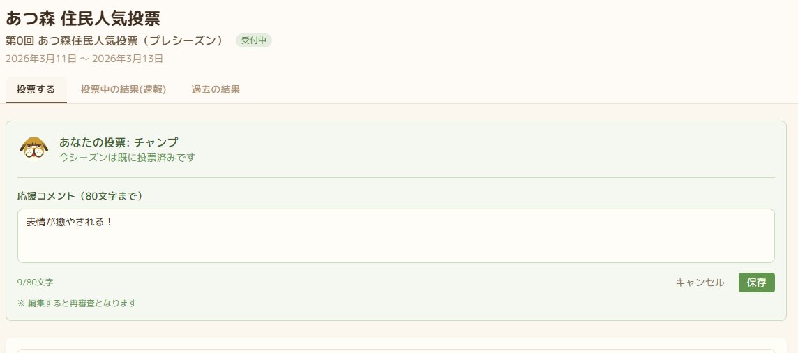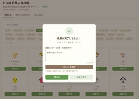 とても簡単なので、ぜひお気に入りの住民に投票してみてください!