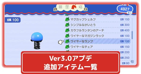 Ver3.0(リゾートホテルアップデート)で追加されたアイテム・家具・衣服一覧