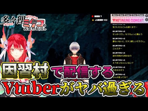 ゲーム画面には、VTuber「多々狸 ミタコ」の姿と、彼女が配信する村の様子、そしてリアルタイムで流れていく動画コメント欄が表示されます。