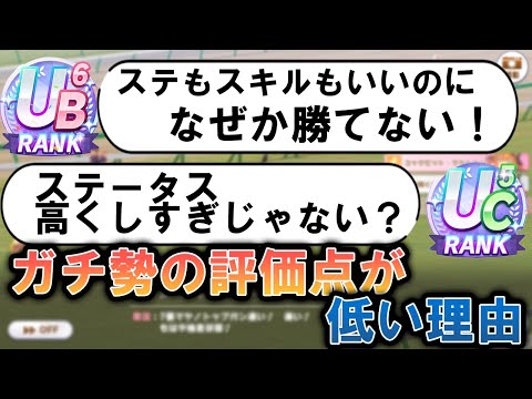 シニア急に頻繁に起こるが、後半での失敗率1%での練習失敗から怒涛のやる気ダウンイベント。 ひどい時にはやる気ダウンから次ターンで練習失敗→そのターンでやる気ダウンイベントと、 絶好調から不調まで2ターンで3段階ダウン。 せめてダウン後はやる気ダウンイベントは無しにするなど、悪質にわざと上振れを抑えるような行為をサイゲは行ってるのではないかと勘ぐられても仕方がないと思われます。 調整が下手なのか?