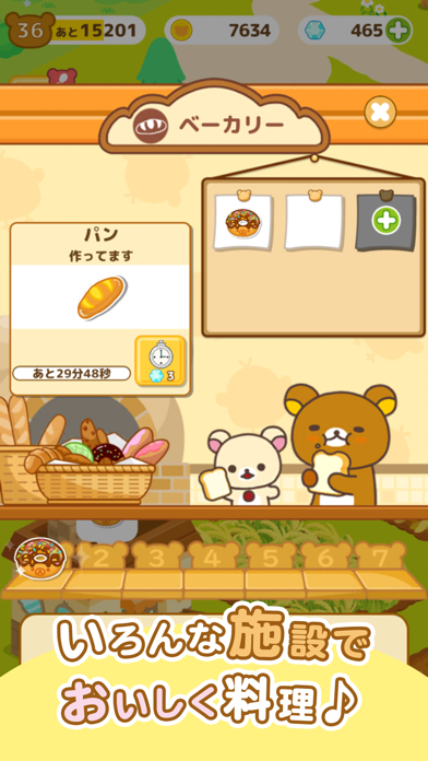 農園で様々な作物を育て、収穫して、組み合わせて、おやつや料理を作って出荷しましょう。ご近所からの注文にこたえると、農園を可愛く装飾できる、リラックマの世界観をイメージしたデコやアイテムがもらえます。オリジナリティ溢れる農園を自由に作り上げ、ユーザー同士でお披露目しましょう。