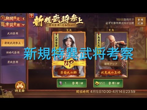 ポイ活で始めました。 一月でSSR3は多少運が絡みますが調整すれば引けます。 私は10日で引けたので4枚目目指してます。 特別登用のSSRは通常と特別登用の両方合わせてSRを7枚引いた場合次の1枚は確定SSRになるそうです。 SRは通常だと2%、特別たと5枚に1枚引けます。 初心者キャンペーンで引ける特別登用無料5連✖️10回は利用出来ますがこれでSSRを引いてしまうと別枠扱いの様で計算されないので注意して下さい。 ゲーム自体も結構面白いです。 14日目で4枚目SSR引けました。 4枚目は功績クエスト、週末イベントの報酬等が必要なのでゲームをちゃんとプレイし武将を強くする事、強い武将を理解する事が求められます。 ゲームを適当にプレイするのであれば3枚目迄が限度だと思います。