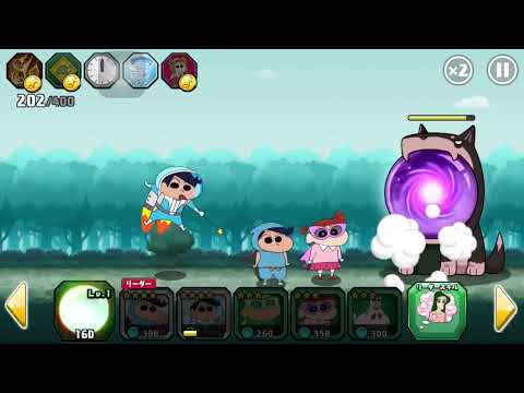 しんちゃんと仲間たちを入手しレベルを上げることでパワーアップします。