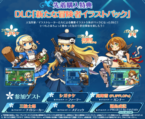 先着購入特典として、ダウンロードコンテンツの「新たな冒険者イラストパック」がついてきます。