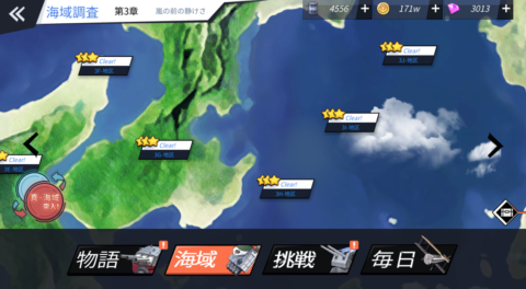 先ほど出てきた「毎日」も、最初は未開放なのでどんどんストーリーと海域を進めていきましょうね!