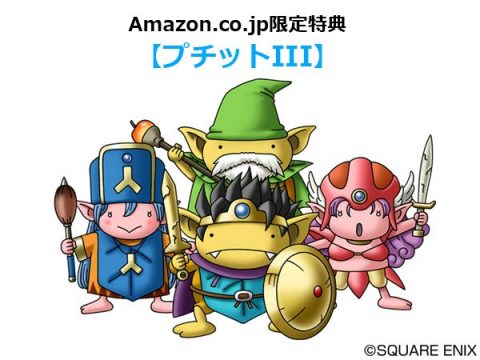 「Amazon.co.jp」ではAmazon限定ありで予約すると、ドラクエⅢのキャラクターのコスプレをしたオリジナルモンスター「プチットⅢ」のダウンロードコードが貰えます。