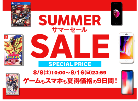 など、他にも多数のゲームソフトと、iPhone・Androidスマホの中古などもセール対象となっています。