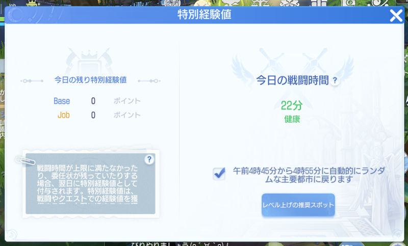 ラグオリではラグマスと同じように、決められた戦闘時間(疲労度)を戦った後は敵を倒してもほとんどお金や経験値が貰えなくなります。しかしその疲労度はBaseLv30にならないと画面上で確認できません。まずはストーリークエストを進めてBaseLv30を目指しましょう。