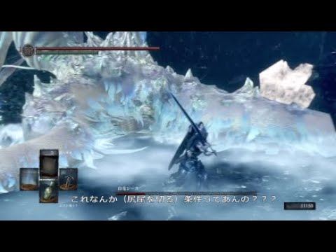 分け与えられた王のソウル ×1 人間性 ×1 月光の大剣 ×1 (中央の尻尾先端部分を切断) |