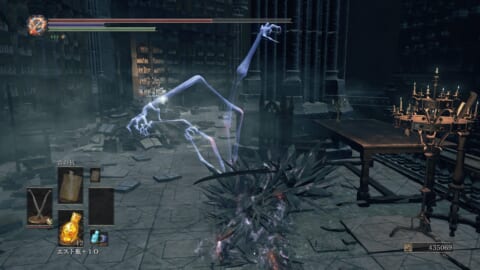 出血を持つ攻撃や、蝕みなどの奇跡を受けるとゲージが蓄積されていき、最大までたまると画面の!BLOOD LOSS!の文字と共に大きく出血します。