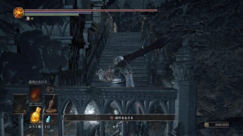 場所:妖王の庭までの聖堂騎士がいるリフトを途中で降りた右側の突き当たりの死体
