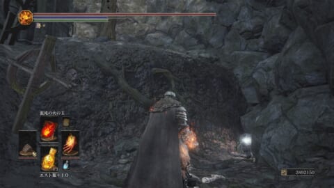 場所:篝火「ファランの城塞」から左側に少し進んだとこの崩れた建物の近く