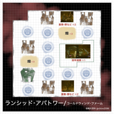 Dead by Daylight(デッドバイデイライト)のマップ「コールドウィンド・ファーム」の派生を以下にまとめました。