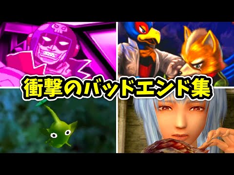バッドエンド。ゲームクリア後のエンディングにおいて、主人公や主要キャラクターが幸せにならない結末を迎えること。本人や近しいキャラクターが命を落としたり、事態がさらに悪化したりするパターンなどがある。ストーリーの分岐によりハッピーエンドも用意されている作品もあれば、どう進んでもバッドエンドにしかならない作品もある。